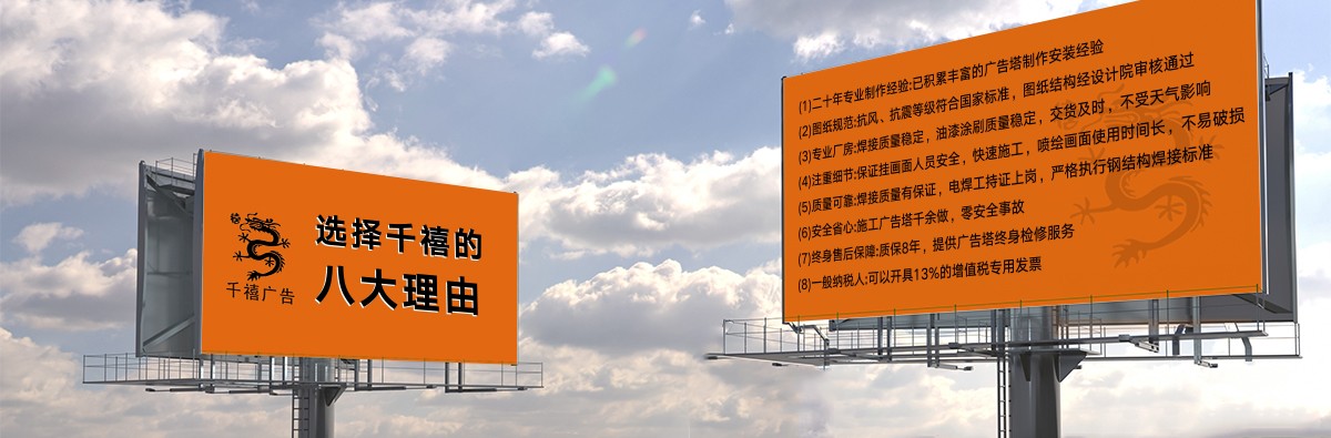 世紀(jì)之交,石家莊千禧廣告裝飾有限公司(下方簡(jiǎn)稱千禧廣告公司或公司)自2000年10月10日創(chuàng)立伊始,即在燕趙大地落地生根,成長(zhǎng)為國(guó)內(nèi)擁有23年施工經(jīng)驗(yàn)的實(shí)體型戶外廣告設(shè)施制作工廠。公司集新品研發(fā)、結(jié)構(gòu)設(shè)計(jì)、生產(chǎn)制作、施工建造于一體,現(xiàn)代化生產(chǎn)廠房為大中型高炮廣告牌(又稱高炮廣告塔、單立柱廣告牌、單立柱廣告塔、擎天柱廣告塔、擎天柱廣告牌)、龍門架、三面翻鋼結(jié)構(gòu)、LED廣告屏鋼結(jié)構(gòu)等的精益生產(chǎn)、高效流水化作業(yè),產(chǎn)品交工質(zhì)量過(guò)硬,公司擁有現(xiàn)代化生產(chǎn)車間,配備了不可或缺的硬件裝備。